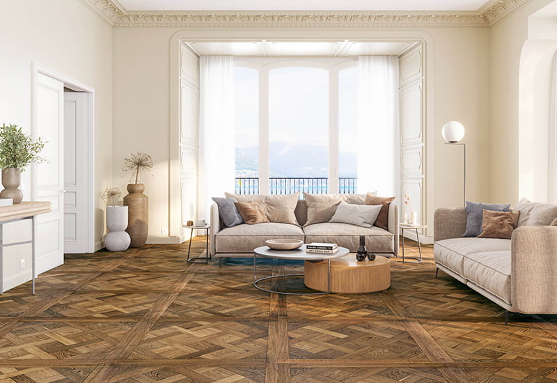 دافئة البلوط الأبيض البلاد تصميم الأرضية الباركيه هي الأرضيات الخشبية الراقية التي تجمع بين أسلوب البلد الفرنسي الكلاسيكي والحرفية الحديثة. تم تصميمه بعناية لتلبية الغلاف الجوي للمنزل الدافئ والطبيعي. تمنح عملية التدخين الخشب نغمة أعمق وتسلط الضوء على نسيجها. هذه التكنولوجيا لا تجعل الخشب يمثل تباينًا أكثر ثراءً في اللون ، ولكن أيضًا يعزز العمق العام للأرض ، مما يجعله يبدو أكثر أناقة وهادئة. مقارنةً بطلاء الطلاء اللامع التقليدي ، يمكن للطلاء الأشعة فوق البنفسجية الحفاظ على المظهر الطبيعي للخشب بشكل أفضل مع وجود تأثير وقائي قوي. هذا الطابق مناسب بشكل خاص للأسلوب الريفي أو الديكور الداخلي على الطراز الرعوي الفرنسي. يجعل لونه الطبيعي والمعالجة السطحية الفريدة خيارًا مثاليًا لإنشاء مساحة دافئة ومريحة ورعوية. كما أنها مناسبة جدًا للمساحات التجارية الراقية وتزيين الأسلوب الرعوي الفرنسي ، مما يضيف جوًا طبيعيًا وأنيقًا إلى أي مساحة.